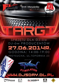 DJ Union i Flash Professional zapraszają wszystkich zainteresowanych do Przysuchy w dniu 27 czerwca 2014 od godz, 14:00 do 19:00. Na terenie Ośrodka Wypoczynkowego „Marysieńka” nad zalewem Topornia pod czas obchodów dnia DJ-a – „DJ’s DAY” zostanie zaprezentowany sprzęt prawie wszystkich marek i producentów jakie liczą się w środowisku DJ-skim. Będzie można testować, oglądać, „dotykać” to co znacie ze stron internetowych.