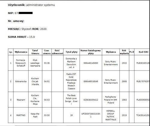 Pobrać plik PDF dla STOART wówczas możecie np dopisać ręcznie nr umowy z Stoart, ale pamiętajcie że już wysłaliście listę do ZAiKS więc obie listy muszą się pokrywać pod względem wypełnionych danych.